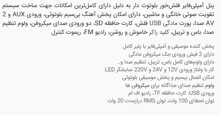 MAMPLI -پنل آمپلی فایر 30W فلش خور بلوتوث دار با ساب و توییتر- اورجینالموجودی:111,250,000 تومان-+خرید