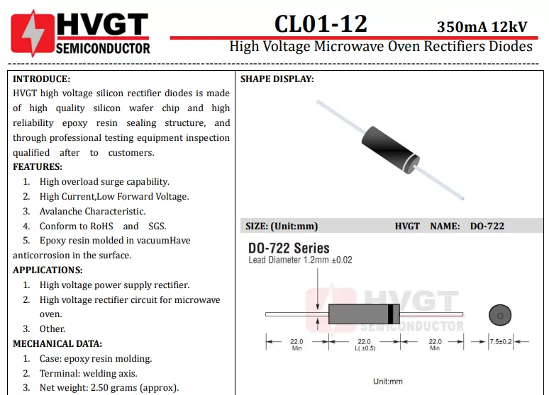 CL01-12 دیود مایکروویو 12000 ولت 0.35 آمپر 12KV/0.35A - اورجینال